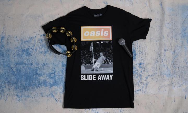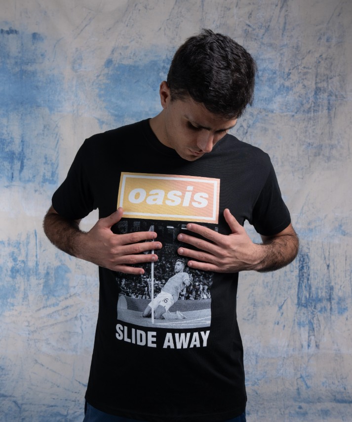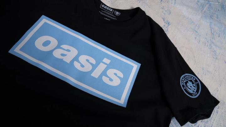 这个限量版胶囊系列包括了T恤、连帽衫和渔夫帽,上面印有曼城足球俱乐部和Oasis乐队的标志。其中的两款T恤设计灵感来源于90年代Oasis乐队的音乐海报,印有一些标志性的瞬间。